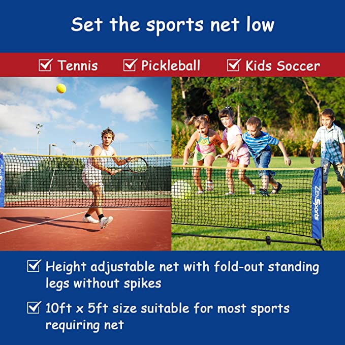 - ★ HEIGHT ADJUSTABLE - Set the net up high to play badminton or kids’ volleyball.Lower the net down to play tennis, soccer tennis, or pickleball. Adjustable Height: 2.5' - 5'
