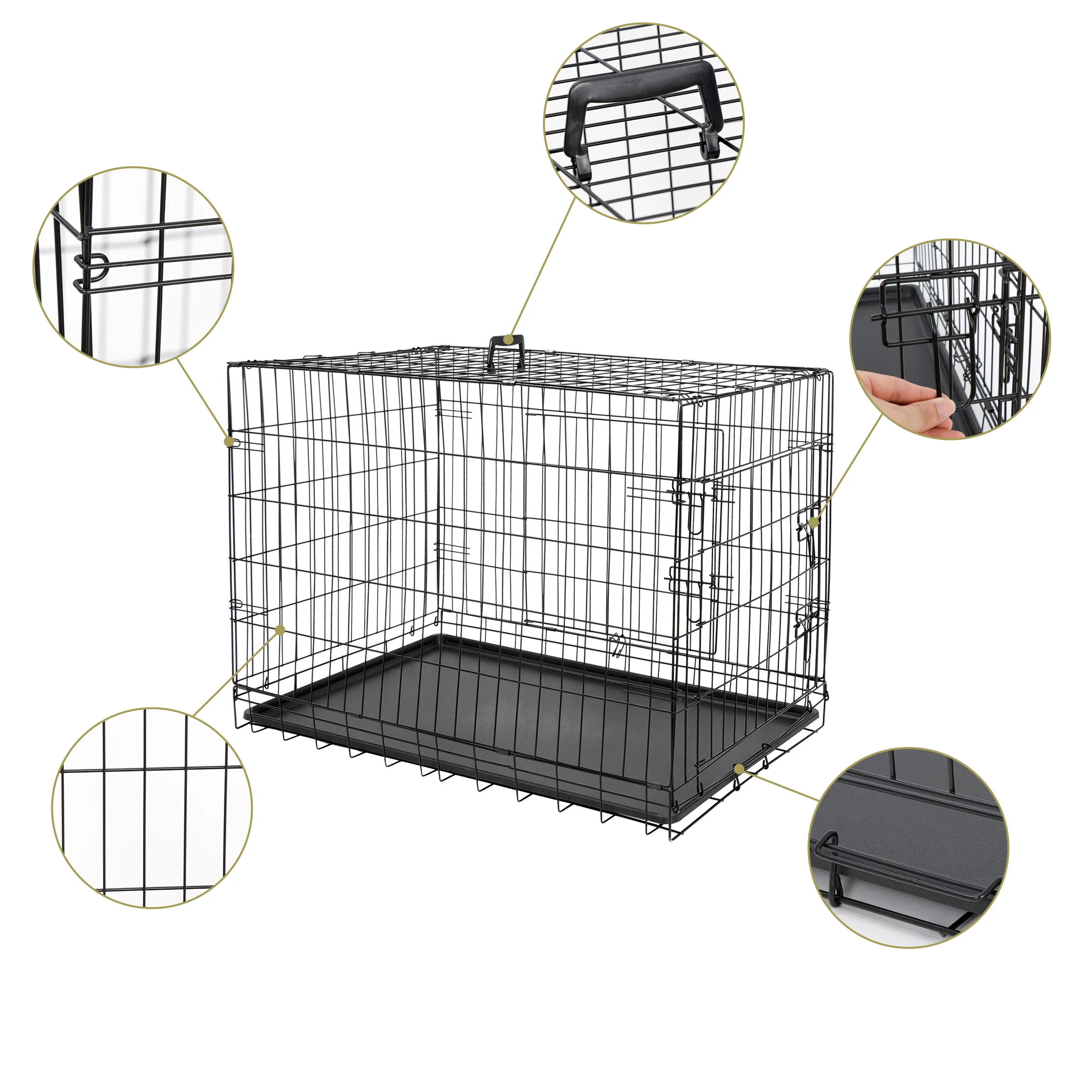 - 【Easy Assembly and Clean】-- This metal dog crate sets up easily in seconds and no tools required. Come with a removable, washable PP composite tray sits at the bottom of the crate for easy cleanup.