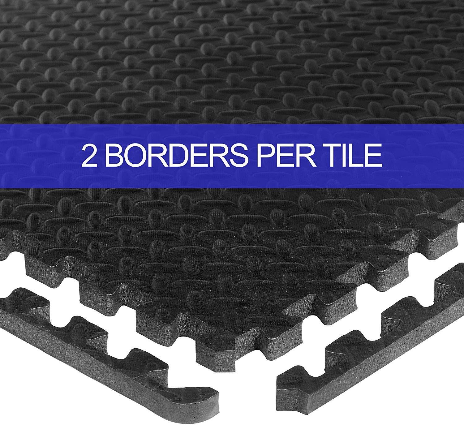 The ZENY 3/4" extra thick puzzle exercise mat, with EVA foam interlocking tiles, is fantastic for yoga workout, gymnastics, MMA, fitness, kids, protective flooring, and home gym equipment. The non-toxic material is an excellent support and cushion for the ultimate workout space. The waterproof and noise-reducing features is just some of the many great attributes in owning these puzzle foam tile mats. Each set includes 24 individual tiles, along with 48 pieces of borders covering a total area of 96 square feet.